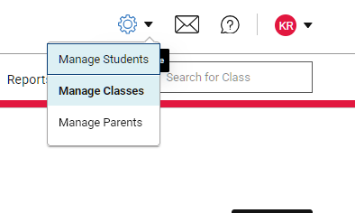 If you would like to print student letters for all the students in the class, use the Manage Classes option from the gear icon. |