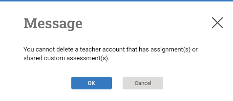 * Teachers with shared custom assessments cannot be deleted by the school administrator. Please contact support for assistance removing teachers with custom assessments.