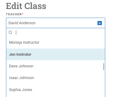 | From the edit class window, choose a new teacher and save. | ![]() |